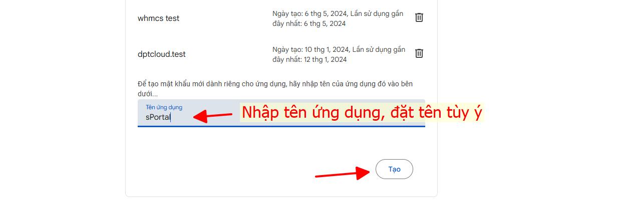 Bước 3: Tạo mật khẩu ứng dụng mới